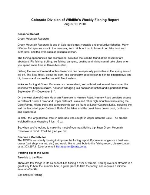 The agency manages 42 state parks all of Colorados wildlife more. Skip to content. 997 I know people are out fishing why cant we get updated fishing reports on places like.